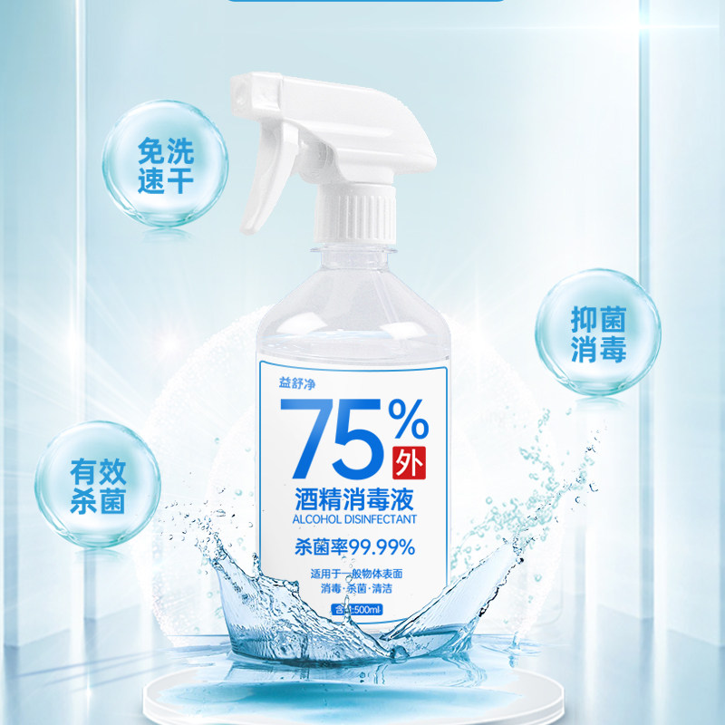 消毒液家用杀菌室内75%酒精喷雾免洗手消毒液衣物杀菌消毒水500ml