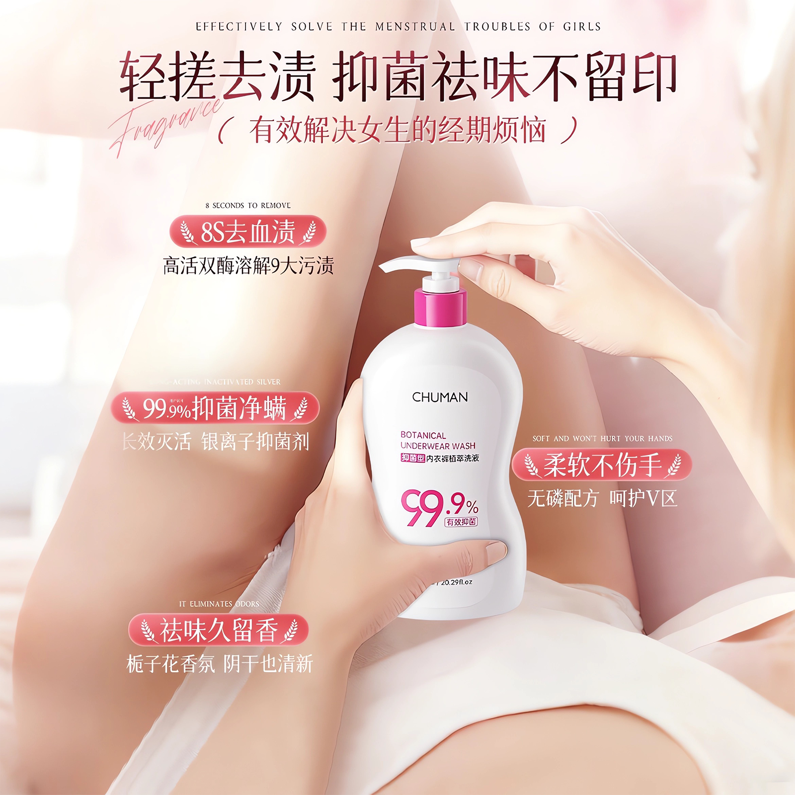 新升级!绽家内衣洗衣液内裤清洗液专用香氛去血渍抑菌留香330ml