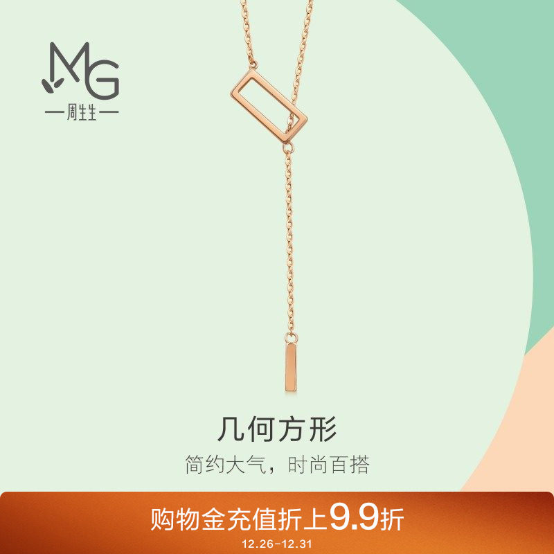 周生生薄荷系列玫瑰金方形几何项链18K金套链92234N