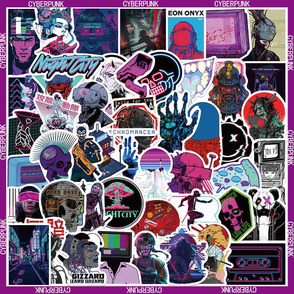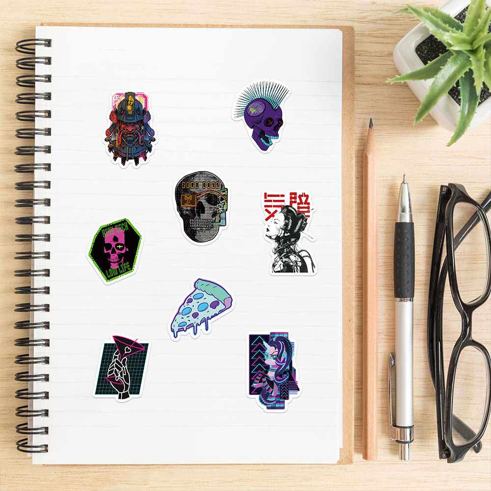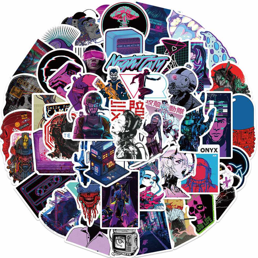 新款直销50张原宿赛博朋克风涂鸦贴纸装饰手帐防水杯电脑手机壳酷