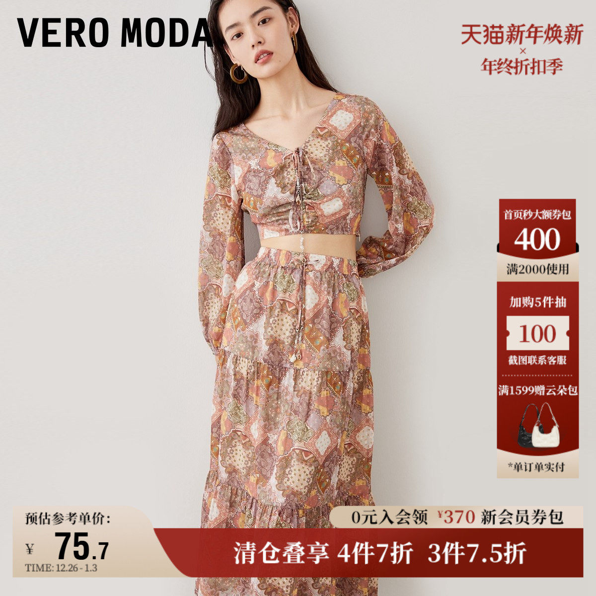 Vero Moda奥莱上衣女秋冬清仓波西米亚风度假抽绳V领短款长袖流行