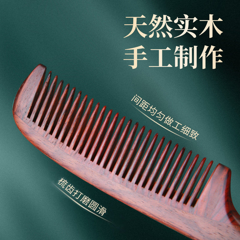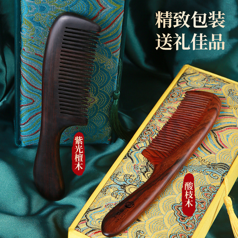 原森太紫光檀木梳子女士专用长发不打结酸枝木家用头梳细齿梳礼物