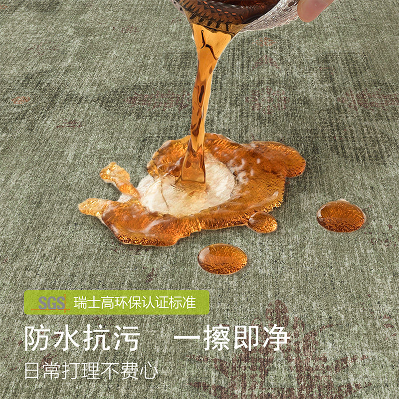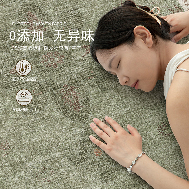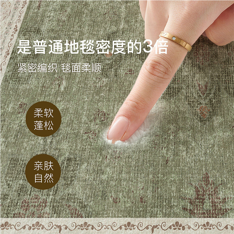地毯客厅2026绿色法式复古中古风免洗防水沙发卧室高级感地垫防污