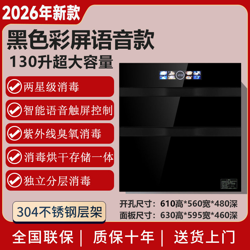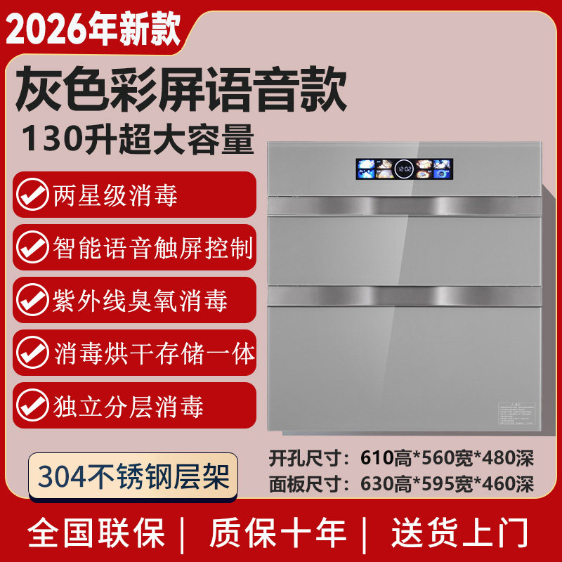 新款消毒柜家用嵌入式紫外线130L升三层厨房餐具碗筷消毒碗柜小型