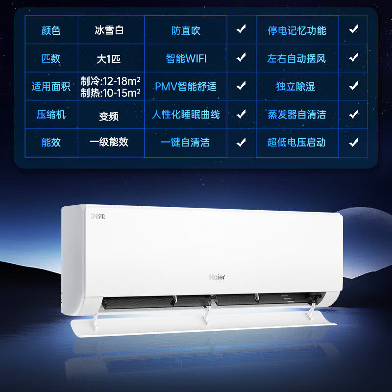 【纯铜管】海尔净省电大1匹租房家用卧室空调小客厅挂机一级能效