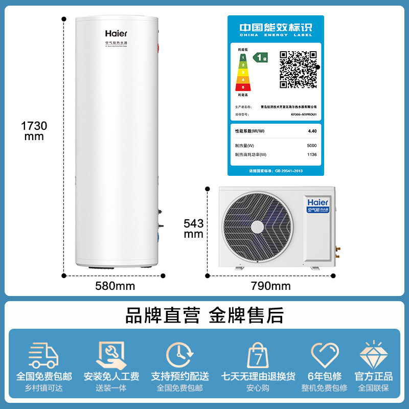 海尔空气能热水器300升大容量热泵2匹全变频小蓝瓶净肤洗N7PRO