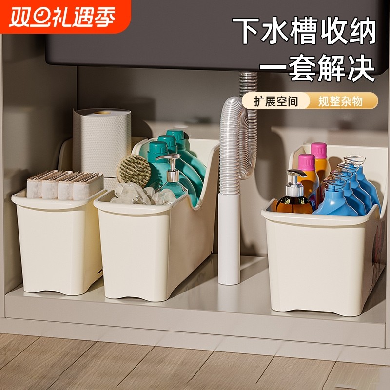 水槽下收纳架厨房多功能收纳盒下水槽置物架橱柜储物筐锅具新款