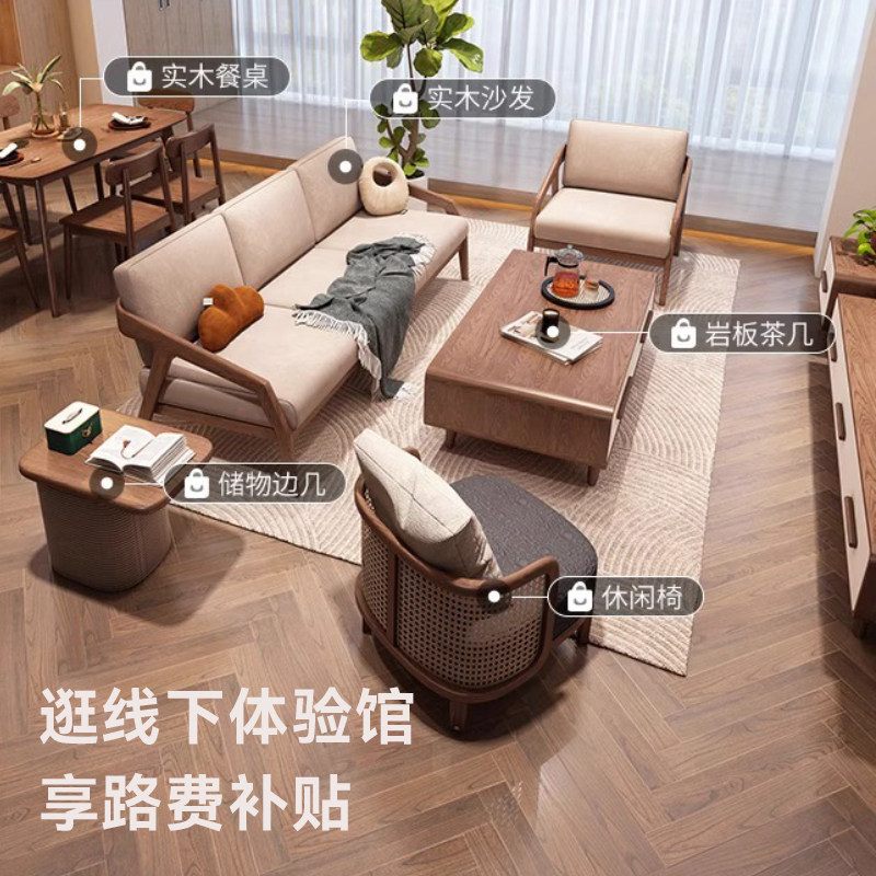 实木沙发组合2025新爆款小户型客厅简约新中式木质沙发长椅出租房