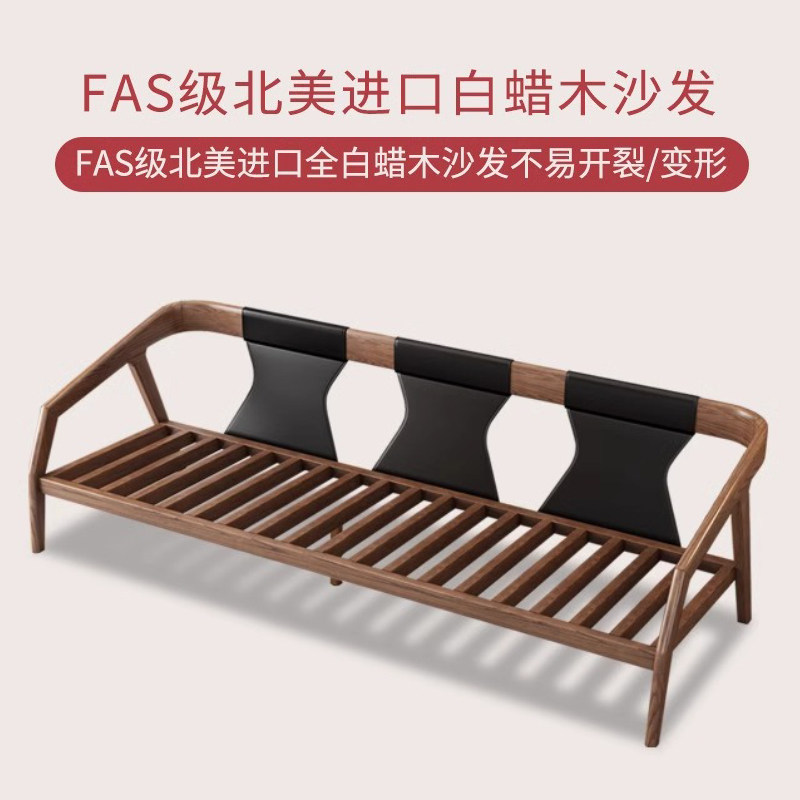 实木沙发新中式橡木真皮沙发北欧客厅小户型家具原木直排布艺沙发