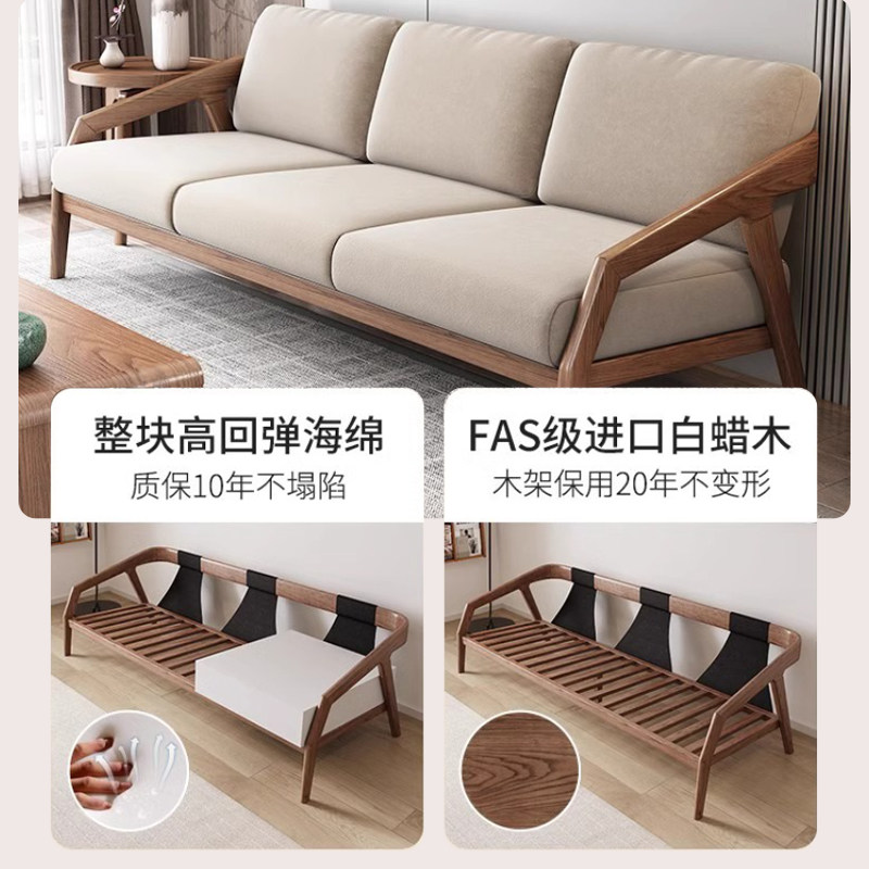 新中式全实木沙发客厅2026新款三人位北欧简约现代小户型直排沙发