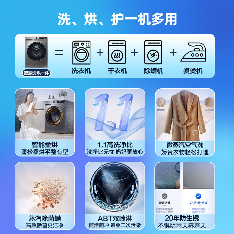 海尔全自动超薄嵌入滚筒洗衣机家用10公斤kg洗烘一体机2024年新款