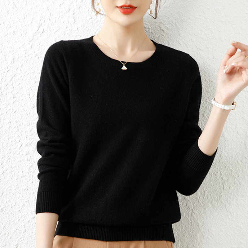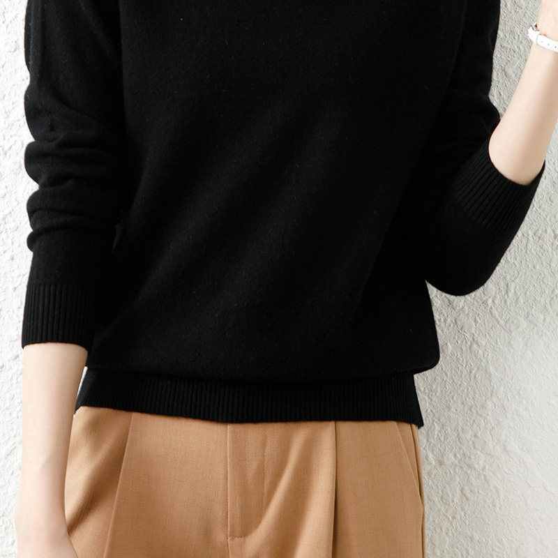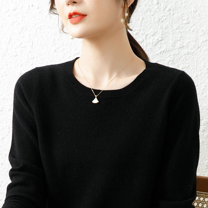 恒源祥低圆领100纯羊毛衫女25秋冬新款套头打底毛衣女纯色针织衫