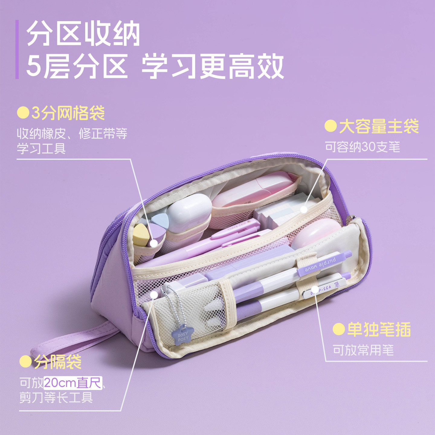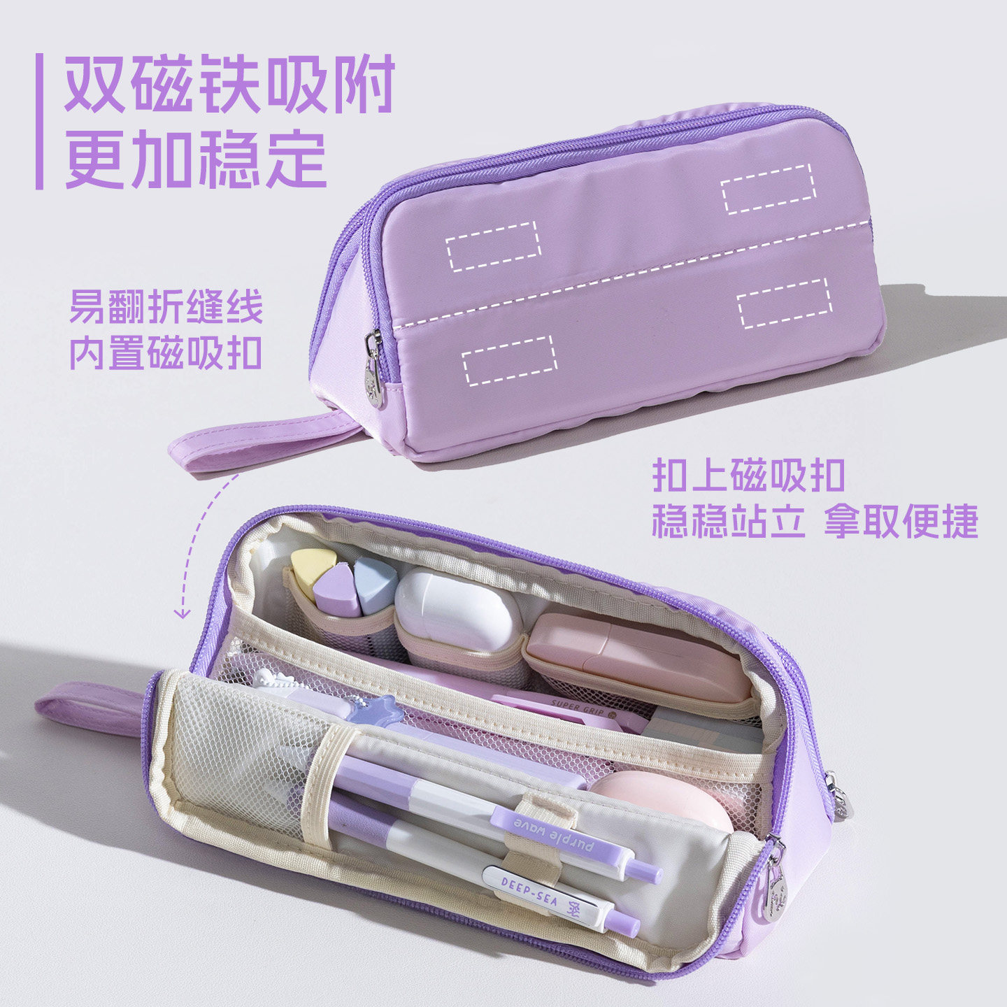 磁吸翻折大开口 文具分区有序收纳
