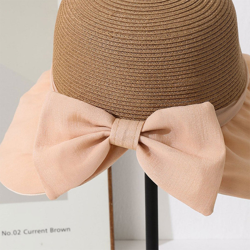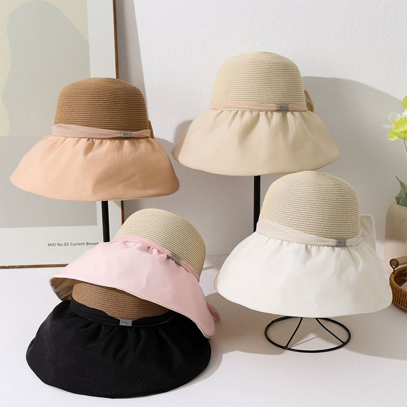 大檐遮阳帽女夏季草编防晒帽遮脸度假风防紫外线太阳帽子黑色白色