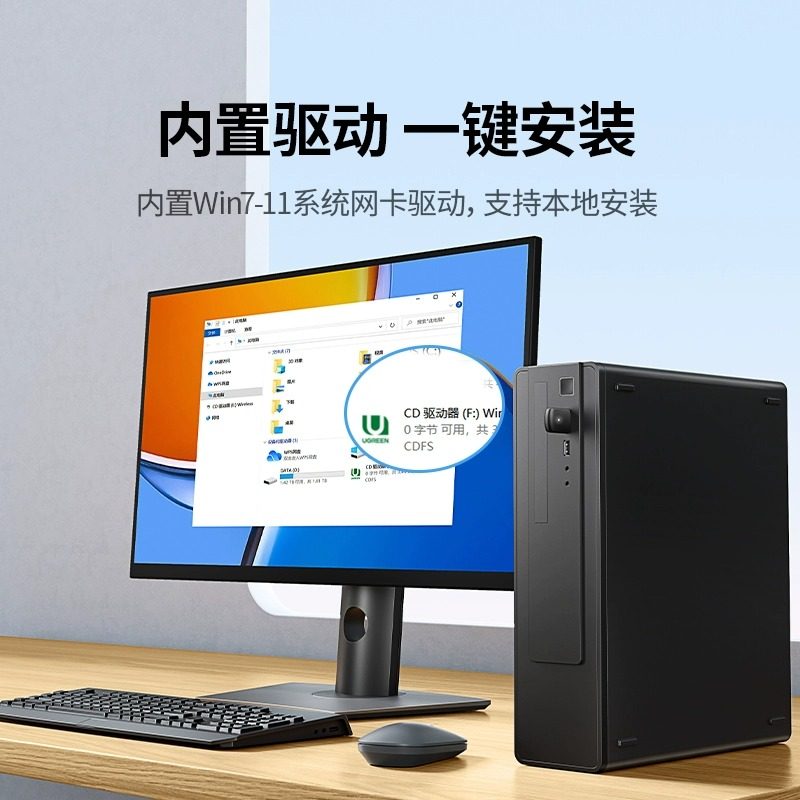 绿联usb无线网卡台式机wifi接收发射器笔记本电脑主机上网连接热点限外置网络外接650M千兆5G双频信号免驱动
