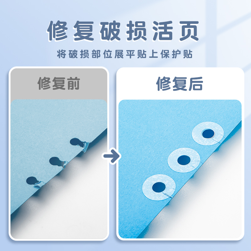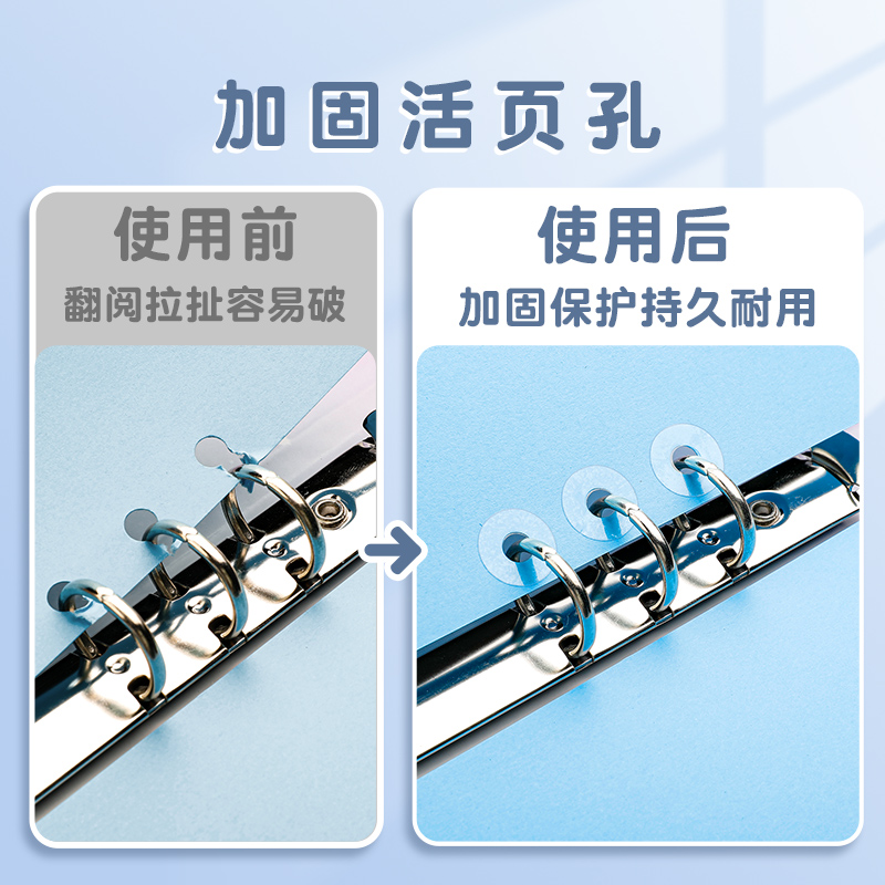 可得优活页纸圆孔保护贴手帐打孔圆点贴修复护孔贴打孔修补贴纸圆形装饰加固透明活页鸡眼圈手账白色封口贴