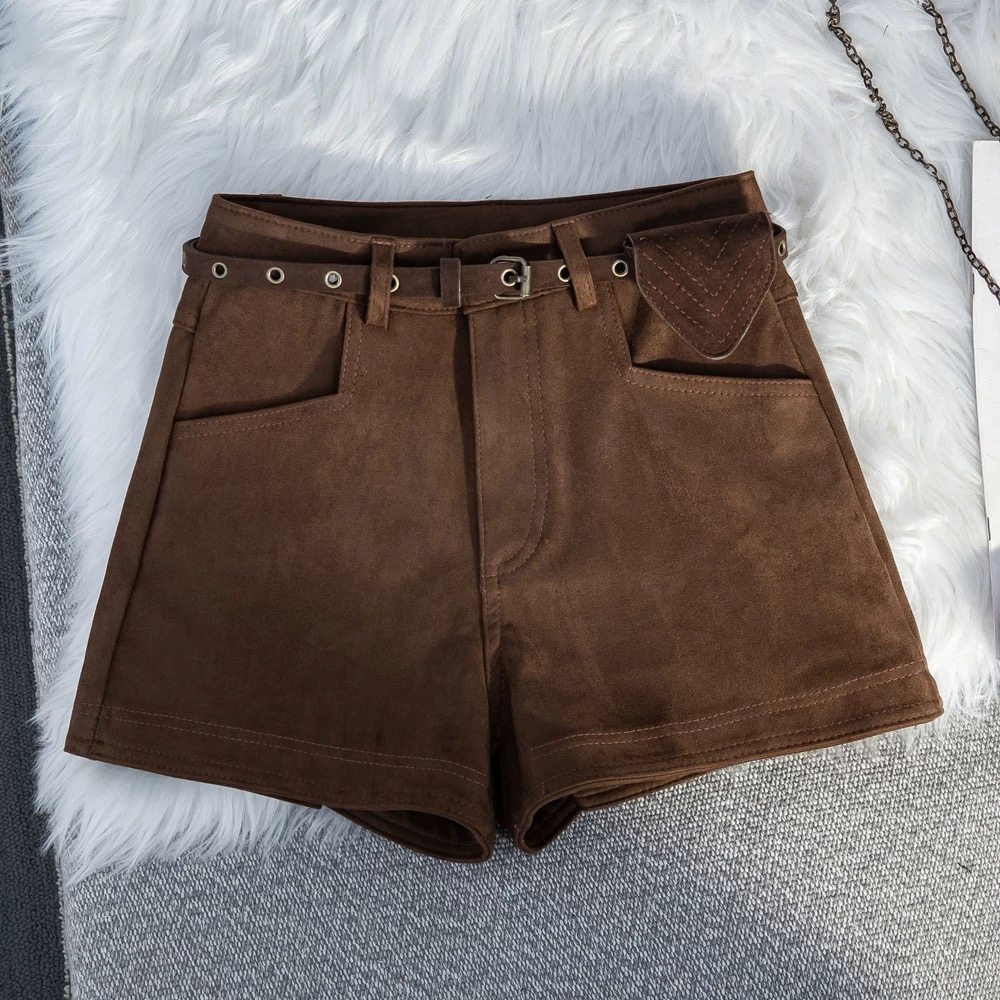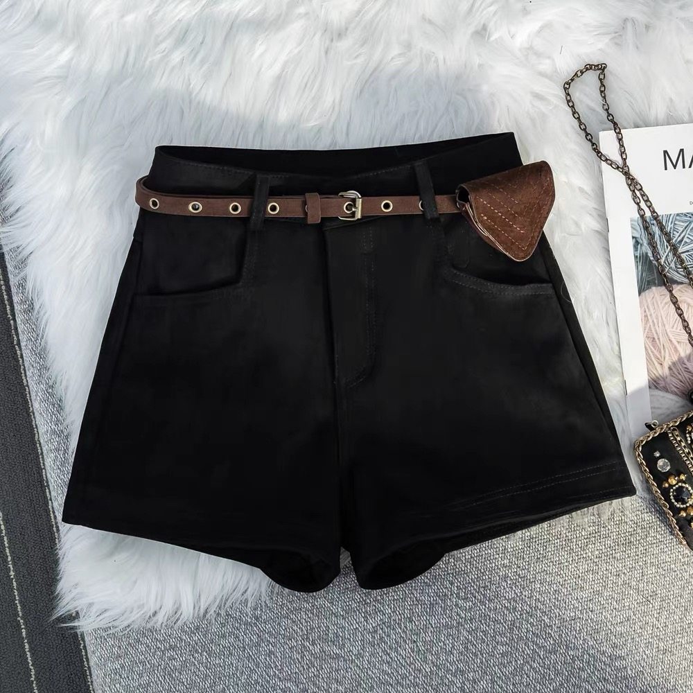 大码胖MM美式复古鹿皮绒短裤女秋冬新款外穿高腰显瘦休闲a字靴裤