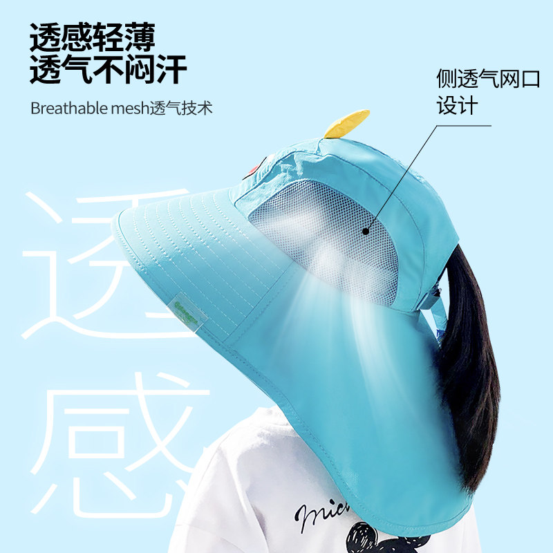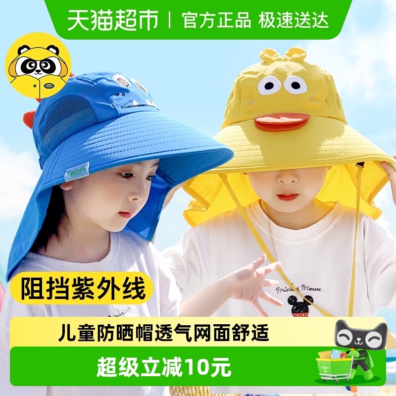 牧萌儿童防晒帽防紫外线宝宝遮阳太阳帽男童女童夏沙滩帽子大帽檐
