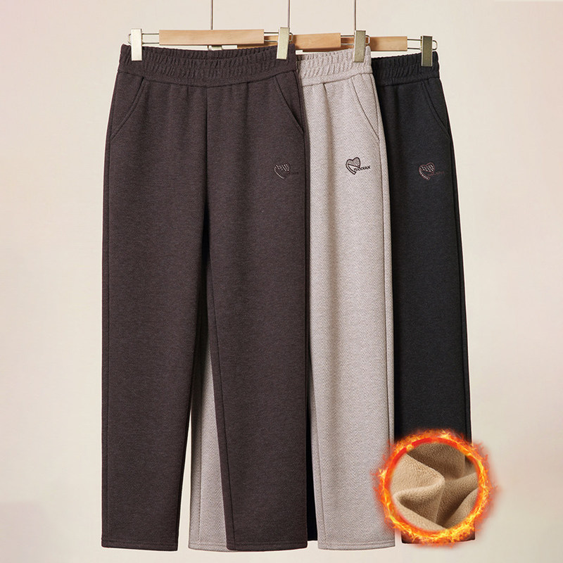 中老年人女裤秋冬加绒长裤外穿妈妈裤子宽松直筒高腰奶奶春秋大码