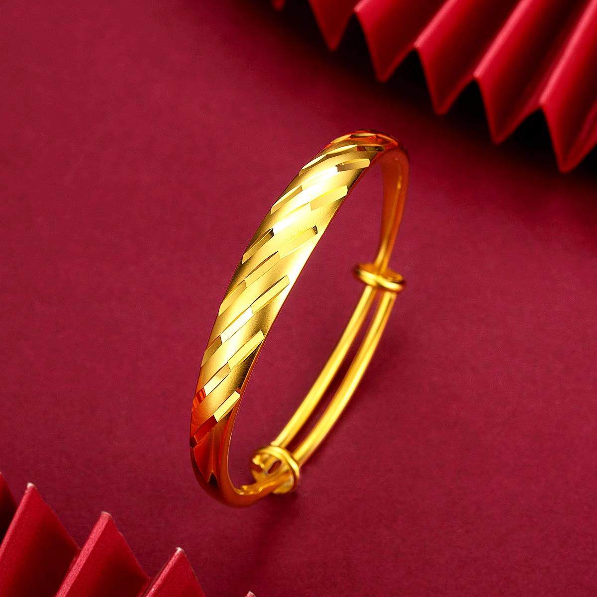 越南沙金手镯龙凤推拉黄金色不掉色实心金店同款活口满天星真金
