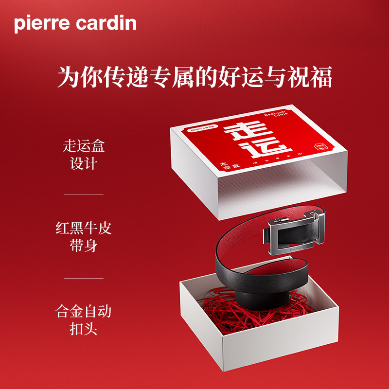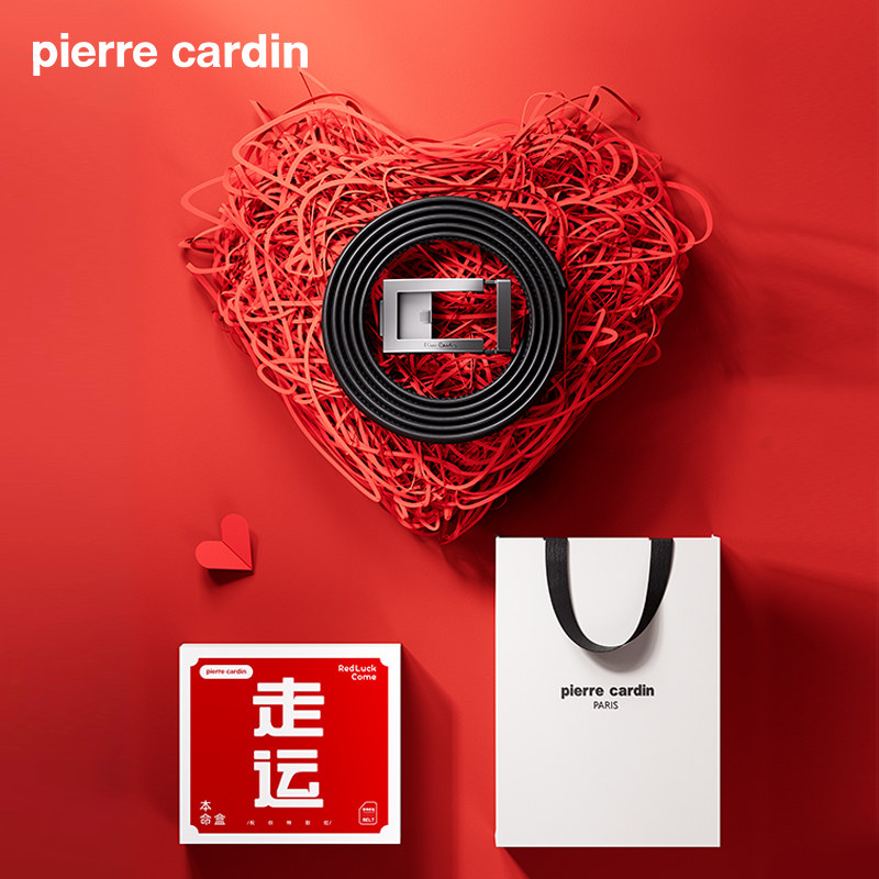 【本命年】皮尔卡丹皮带男真皮红色腰带男士礼物正品结婚男式裤带