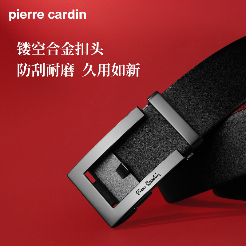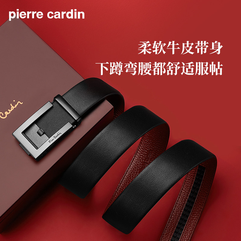 皮尔卡丹皮带男真皮腰带新款礼物商务男士正品本命年牛皮红裤带