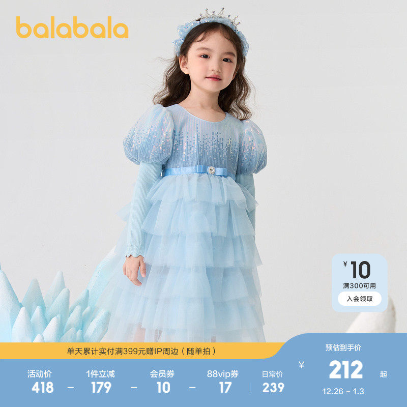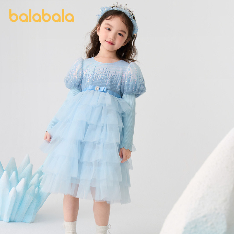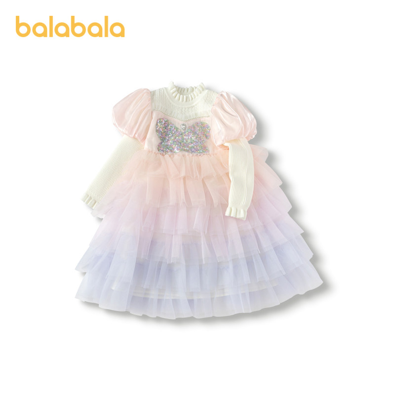 巴拉巴拉女童公主裙网纱连衣裙秋冬蛋糕裙珠片洋气甜美时尚泡泡袖