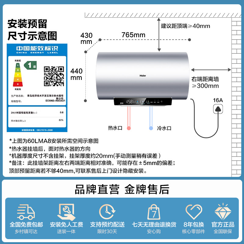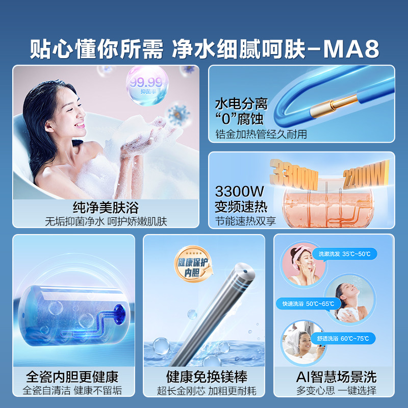 海尔电热水器家用卫生间洗澡净肤洗一级能效变频速热官方旗舰MA8