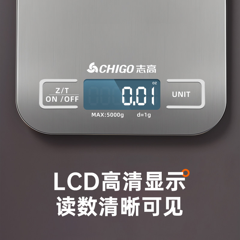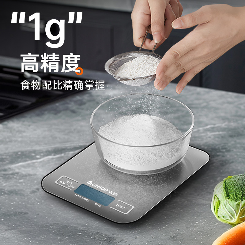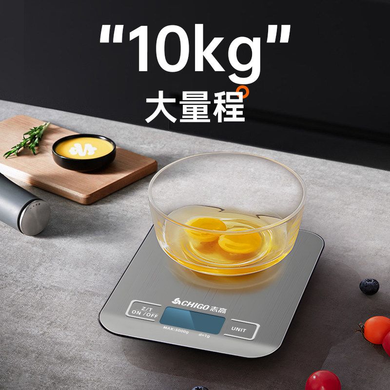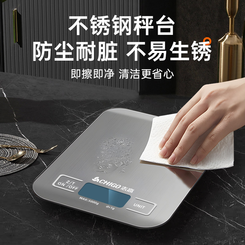 志高厨房秤家用小型高精度称重食物秤不锈钢防水专业烘焙克称量器