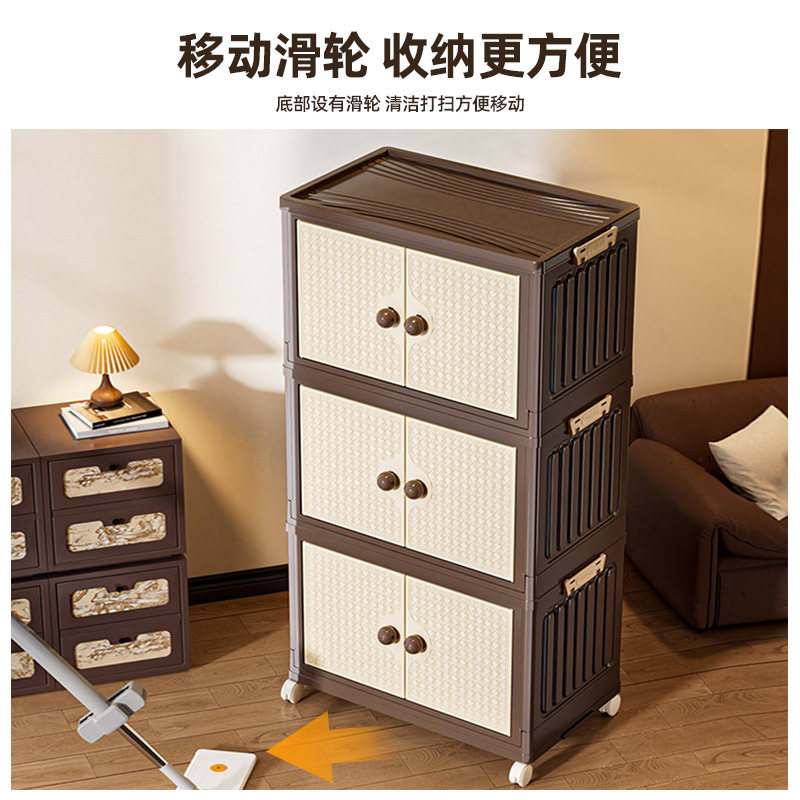 中古风防尘储物书柜带门可移动书架置物架落地家用儿童玩具收纳柜