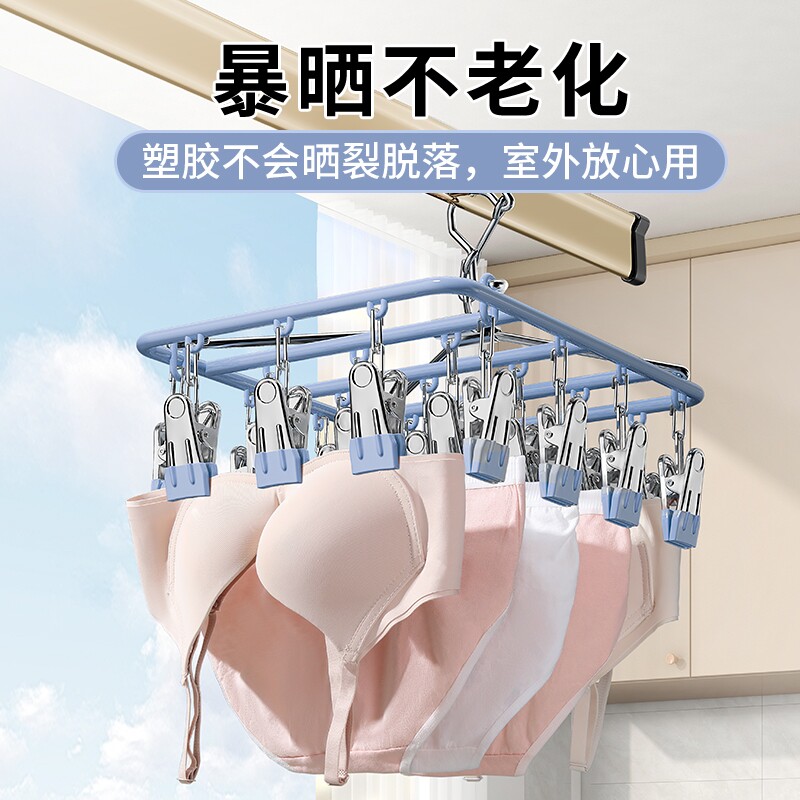 袜子晾晒架不锈钢多夹子晾衣架阳台家用挂衣多功能带夹子内衣神器