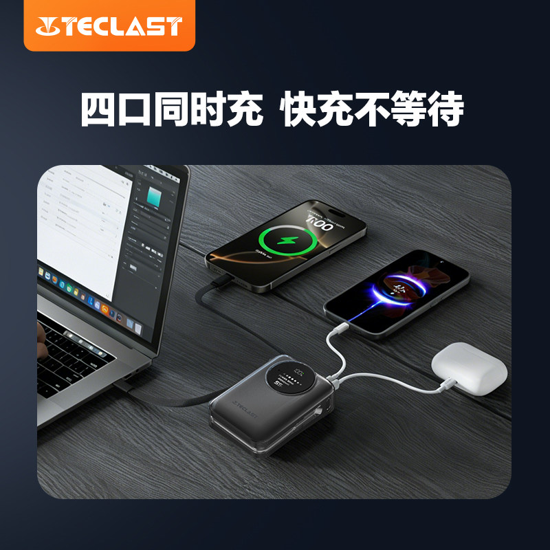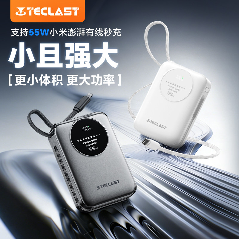 TECLAST台电充电宝3C认证20000毫安时自带线55W疾速秒充小巧充电宝可上飞机适用于苹果小米华为电脑钛银灰