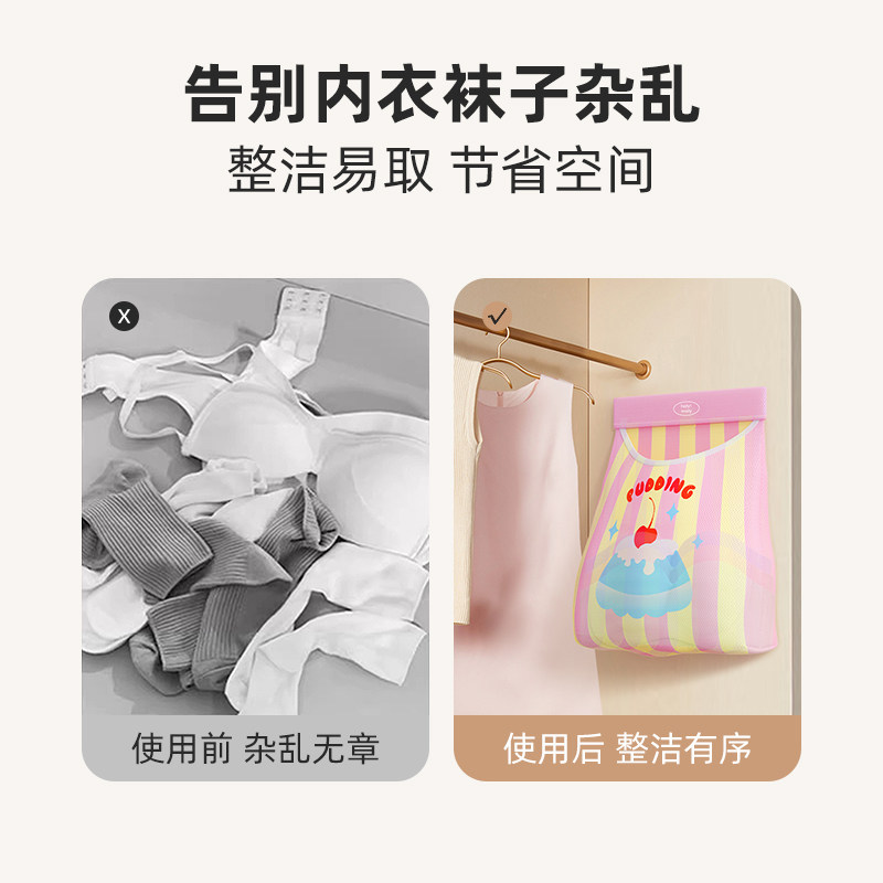 内衣袜子收纳挂袋衣柜整理神器内裤悬挂式网兜置物袋三层家用柜内