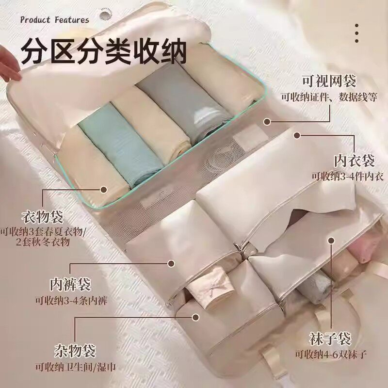 七合一旅行收纳袋出差旅游行李箱衣物分装整理袋子内衣内裤收纳包
