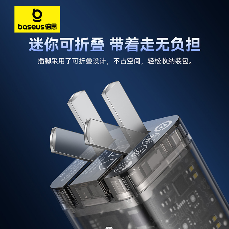 30W快充不伤机 五代透明氮化镓 可折叠插头