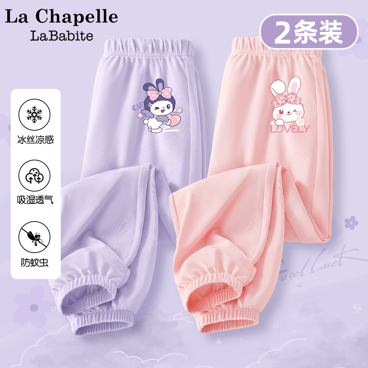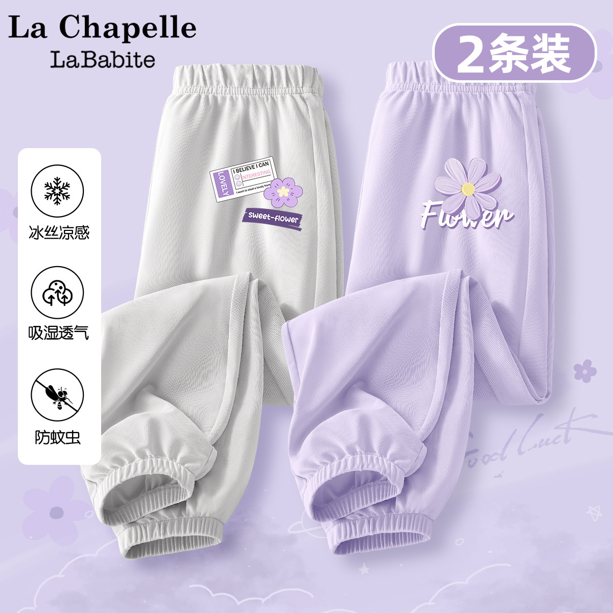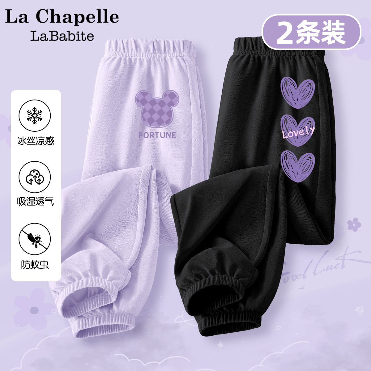 拉夏贝尔女童裤子夏季2025新款中大童冰丝薄款防蚊裤儿童夏装长裤