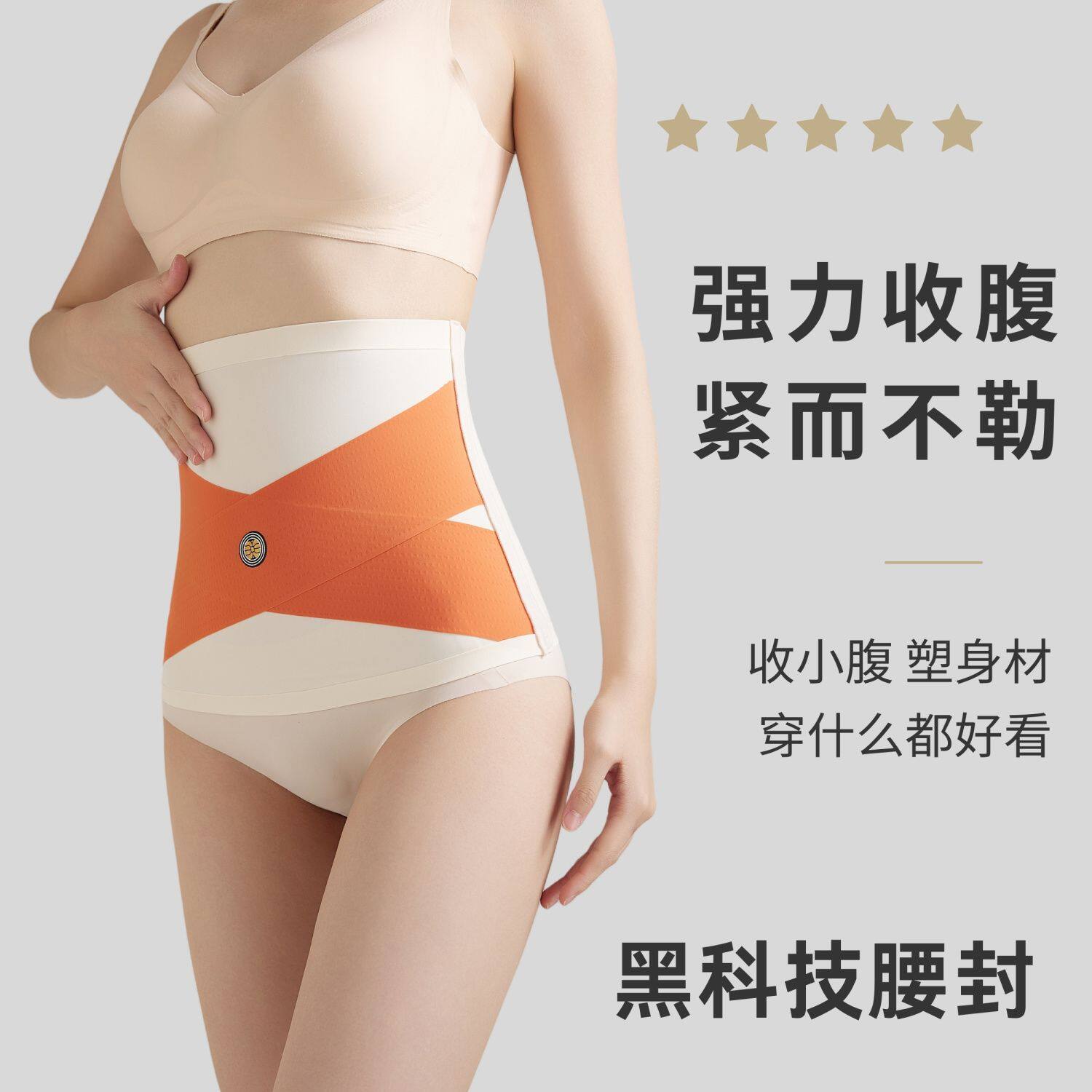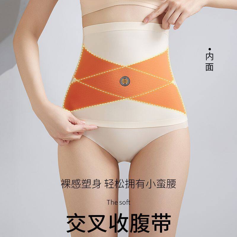 冰丝能量石交叉收腹带舒适女士薄款无痕裸感塑身透气束腰带不卷边