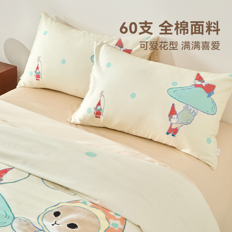 无印良品全棉四件套学生宿舍纯棉卡通儿童被套床单三件套床上用品