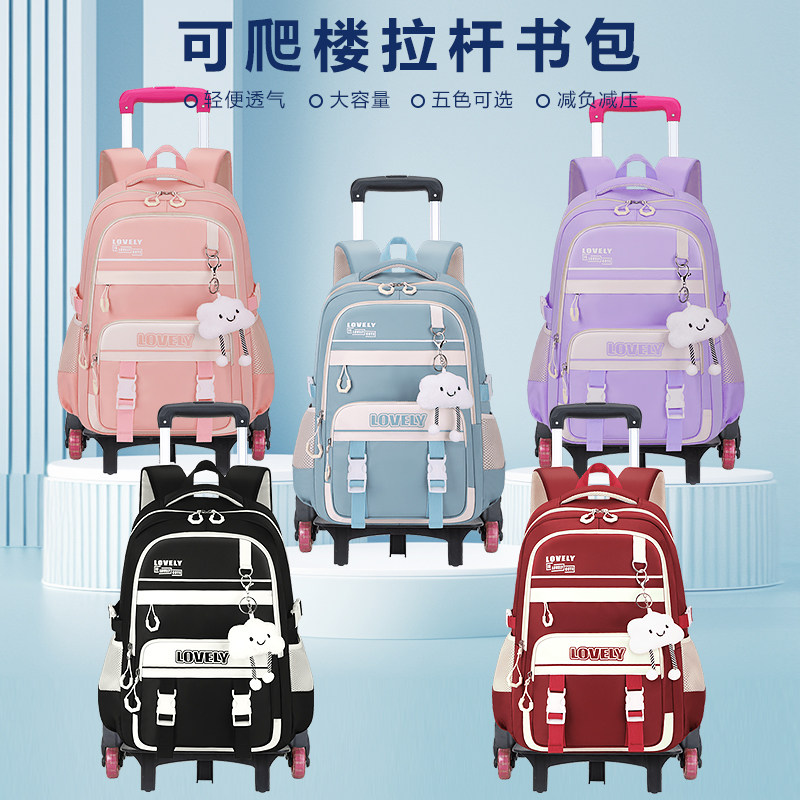26新款拉杆书包女时尚减负减压大容量小学生初高中双肩背包可拆卸