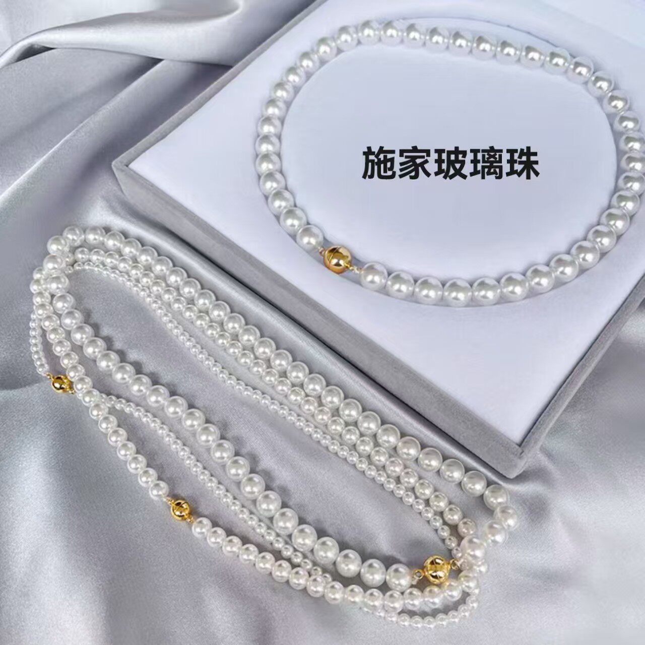 玻璃珠磁吸扣珍珠项链女简约轻奢小众高级小米珠气质百搭锁骨颈链