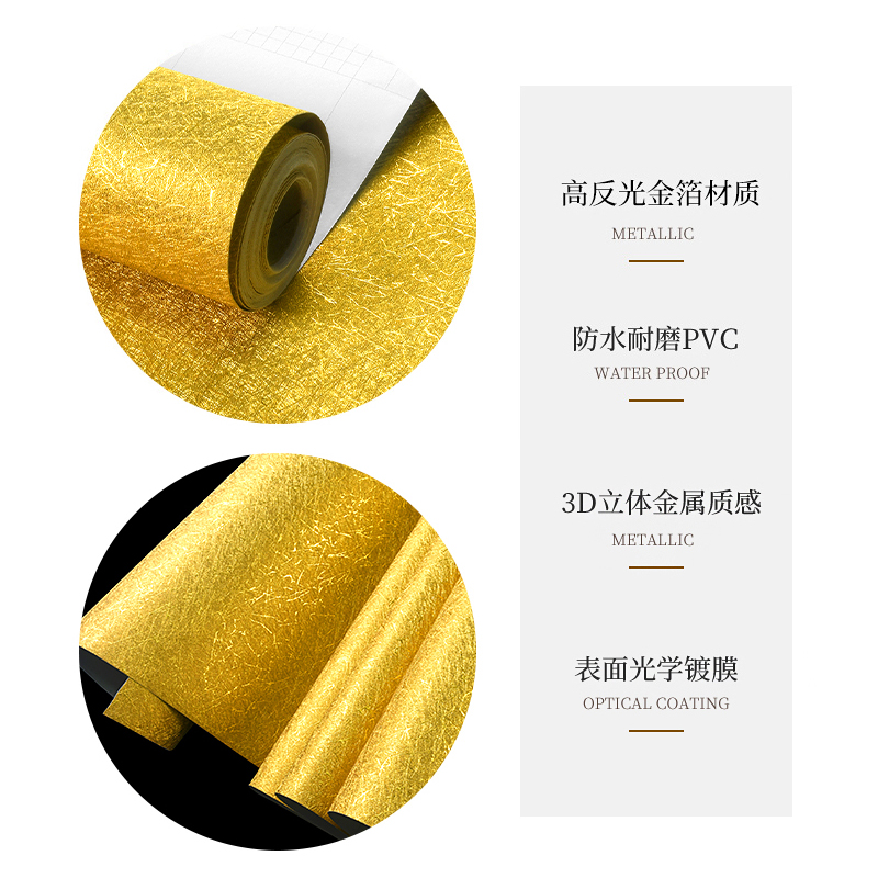 金箔自粘墙纸金色金黄金属质感墙贴纸闪光反光银色吊顶天花板墙纸