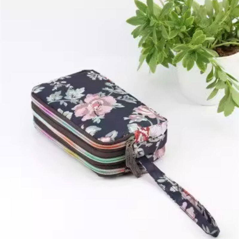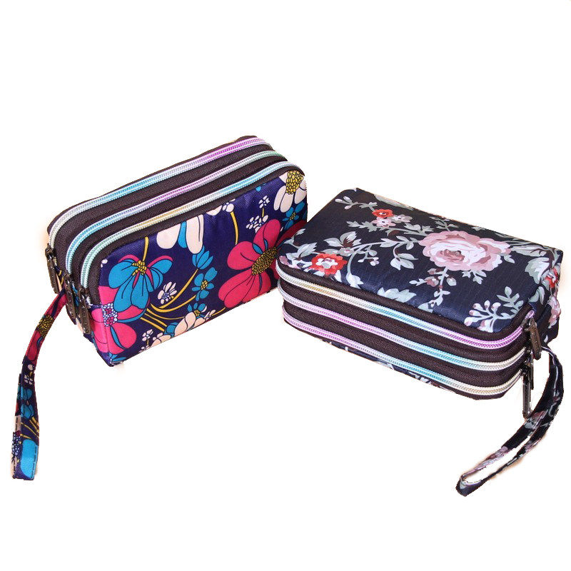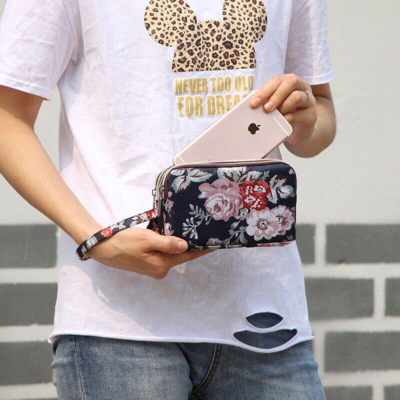 长款三层拉链手拿包 大容量帆布女士零钱包 日韩风格简约小包 牛