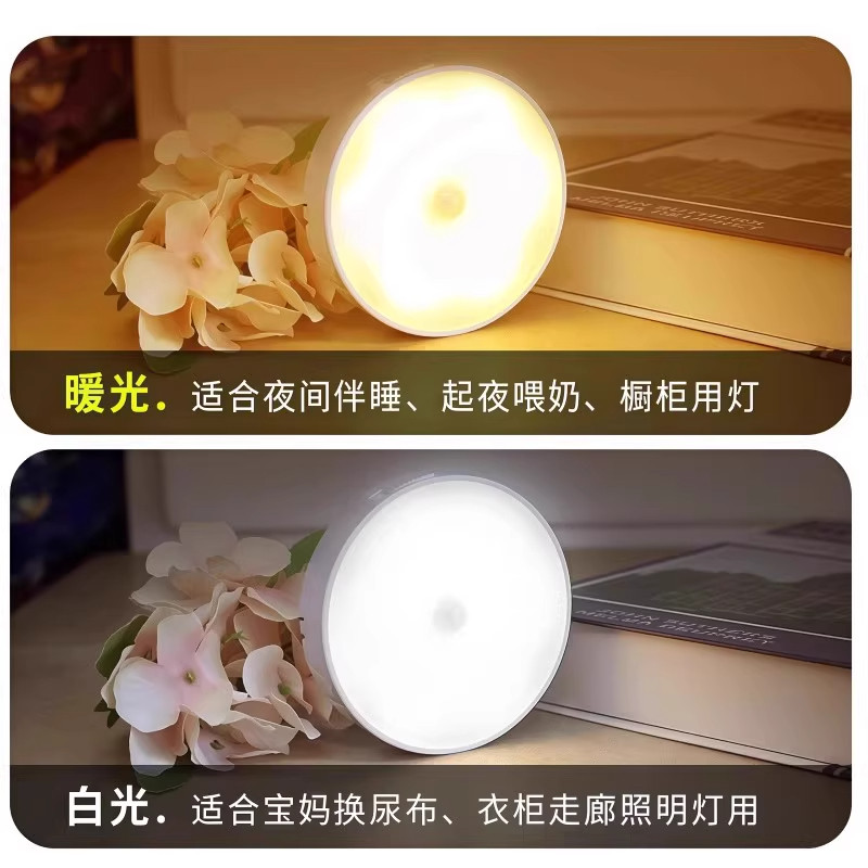 自动人体感应灯起夜卧室婴儿喂奶护眼壁侧发光过道充电小夜灯地脚