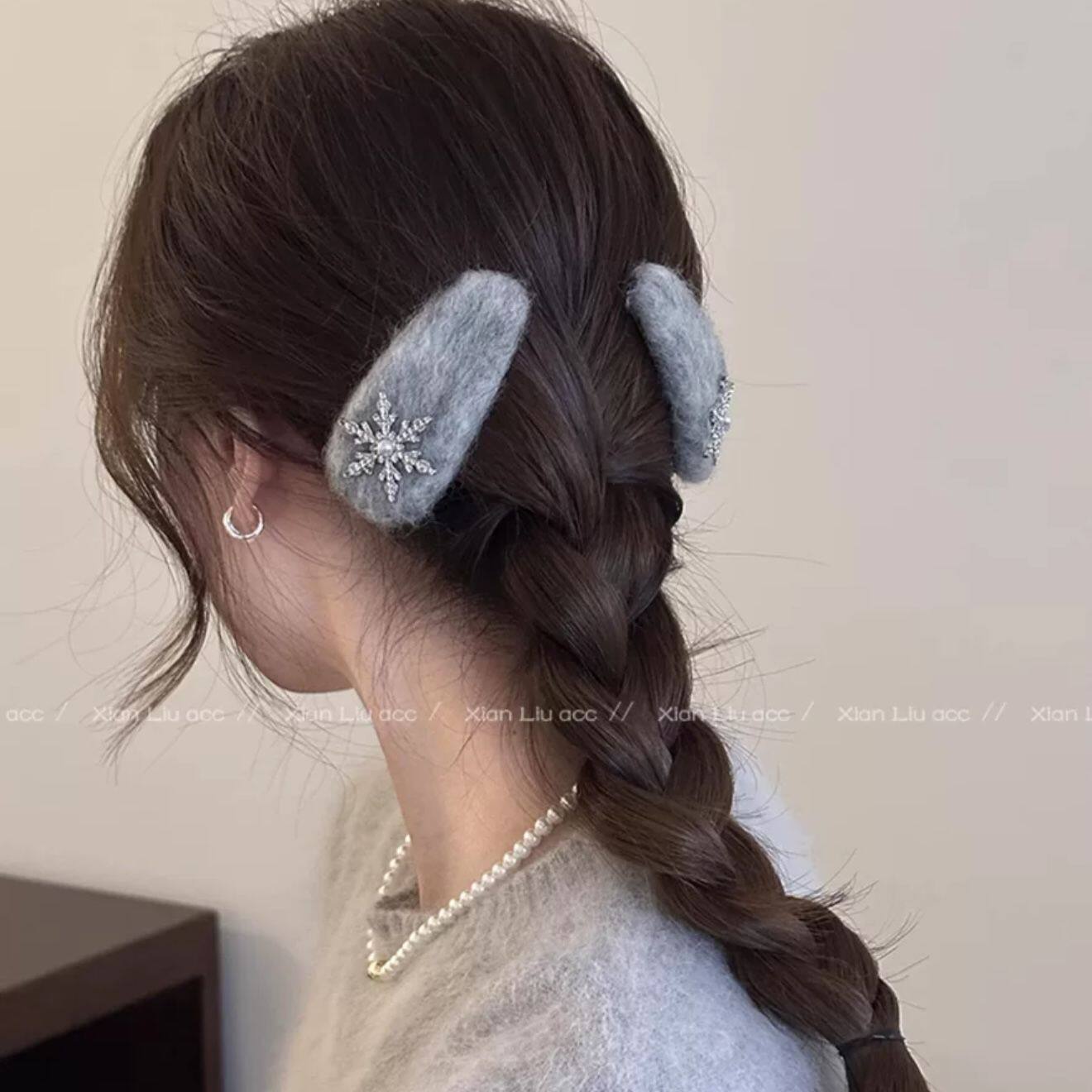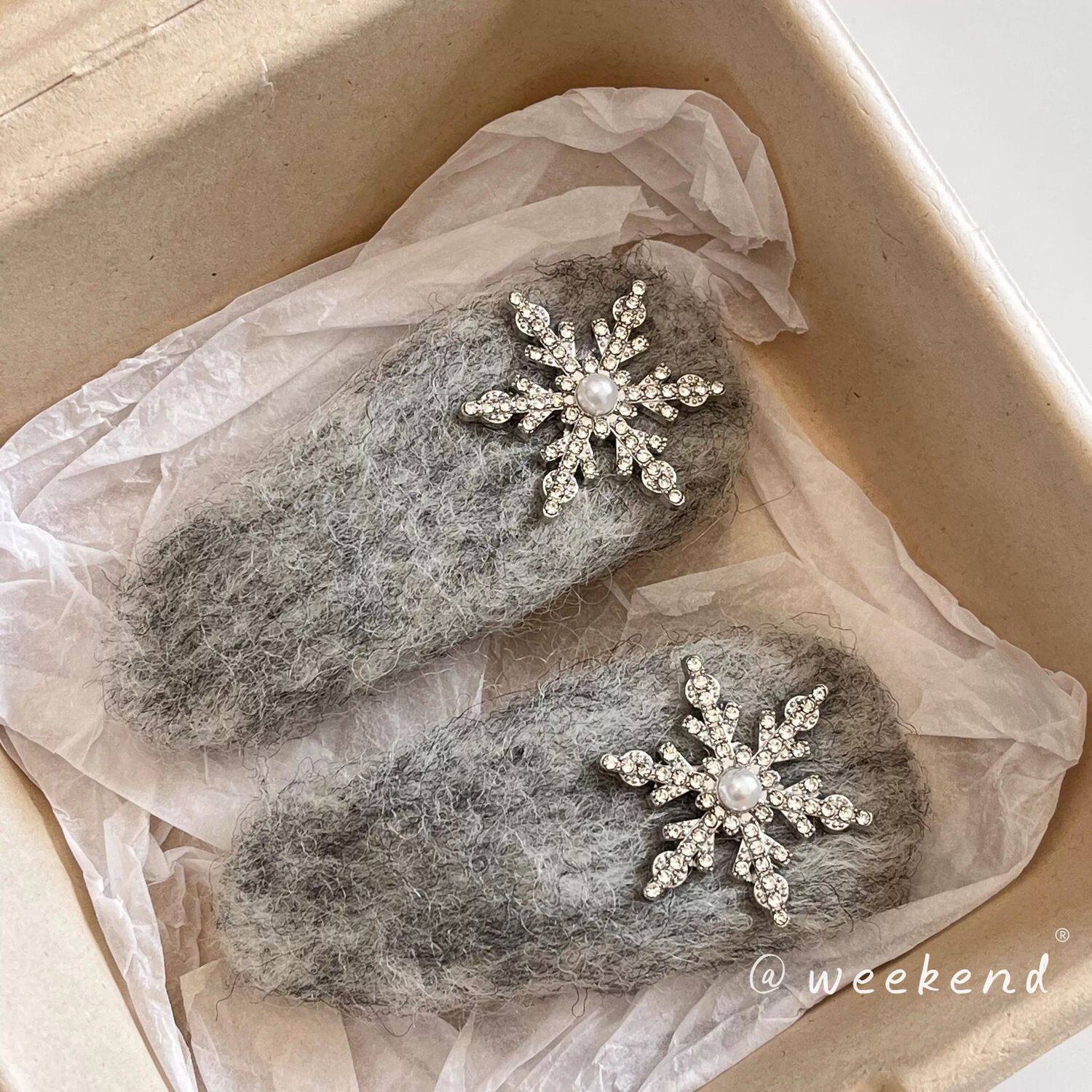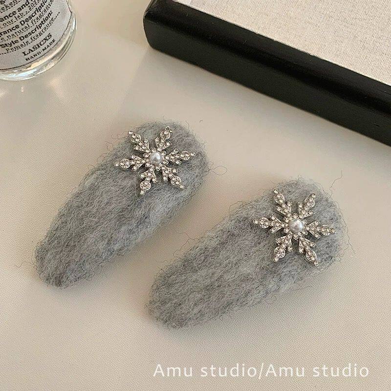 灰色毛绒绒雪花发夹刘海夹侧边夹甜美秋冬氛围感小雪掰掰夹bb夹子