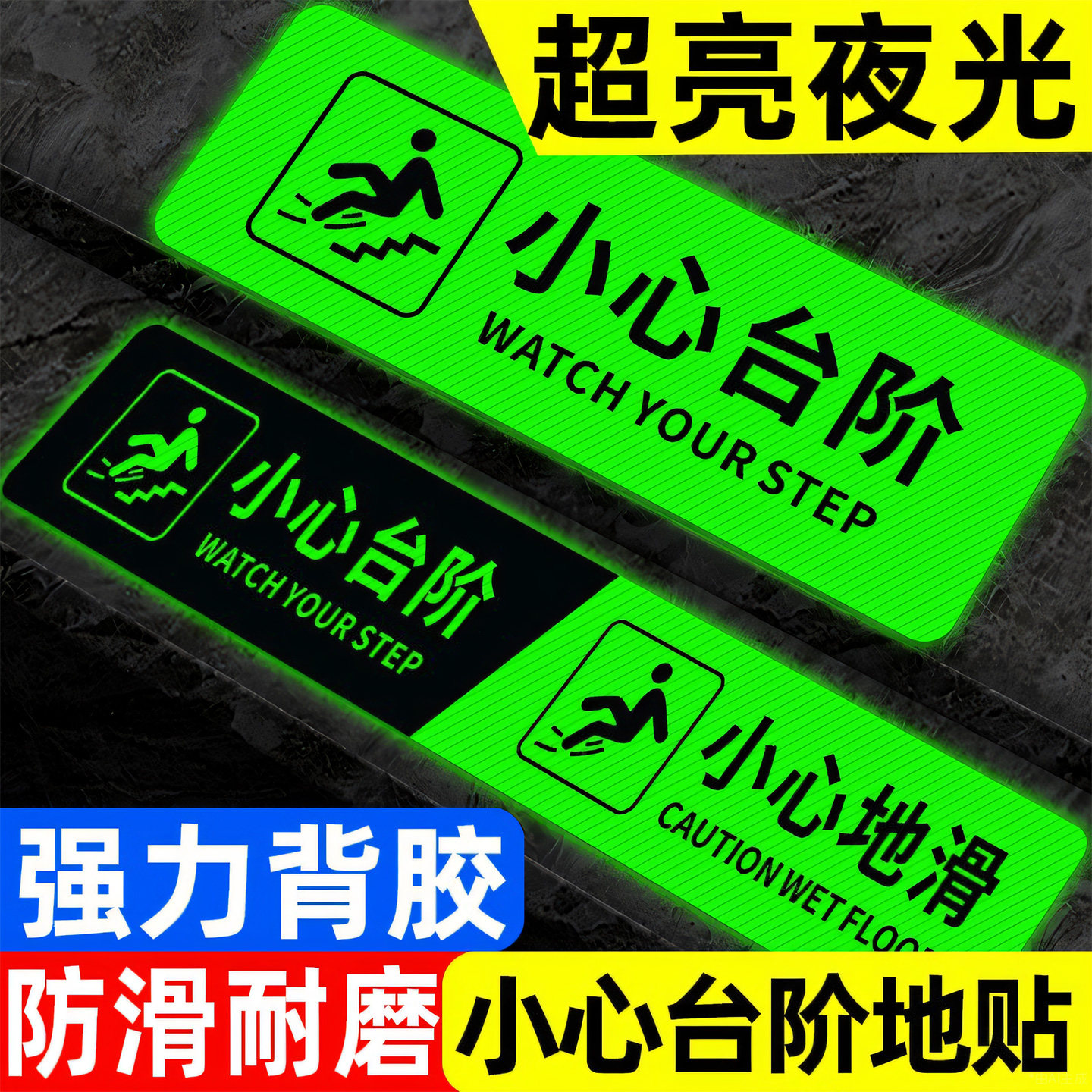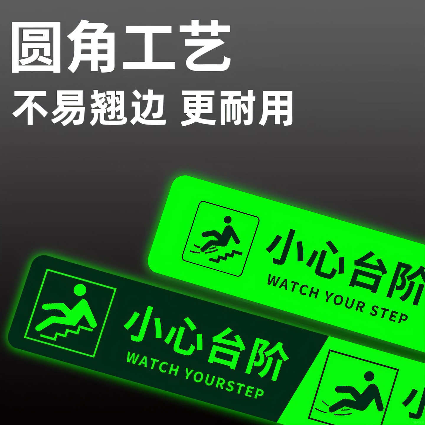 小心台阶地贴夜光小心地滑提示牌注意台阶提示贴纸防水小心台阶警示牌上下楼梯反光地标指示自发光安全标识牌