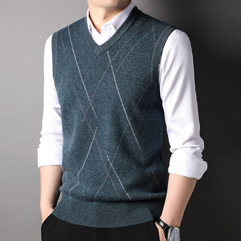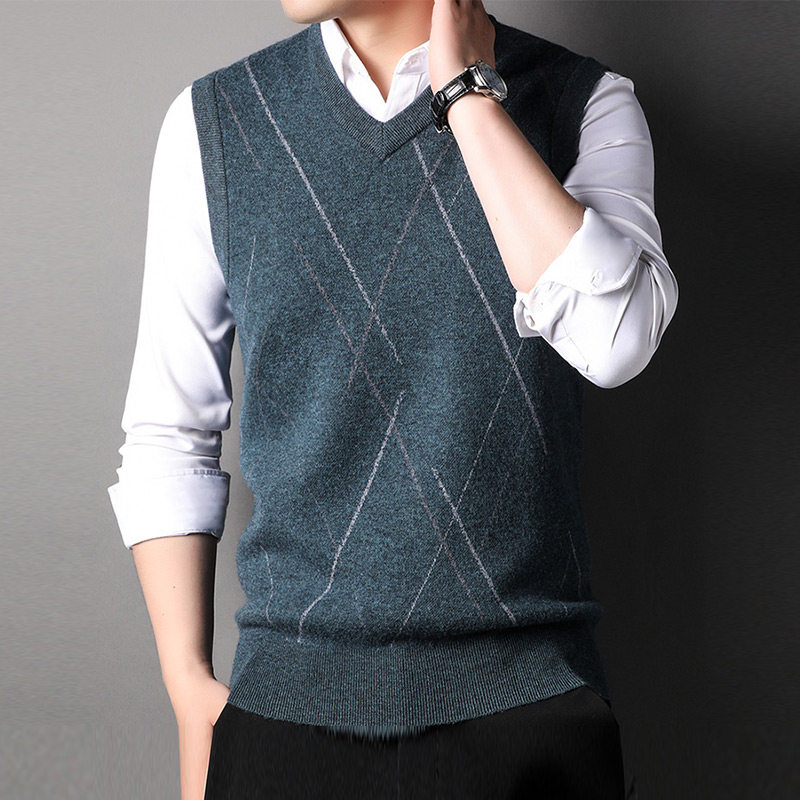 恒源祥纯羊毛背心中年男士加厚无袖毛衣爸爸装坎肩商务马甲针织衫