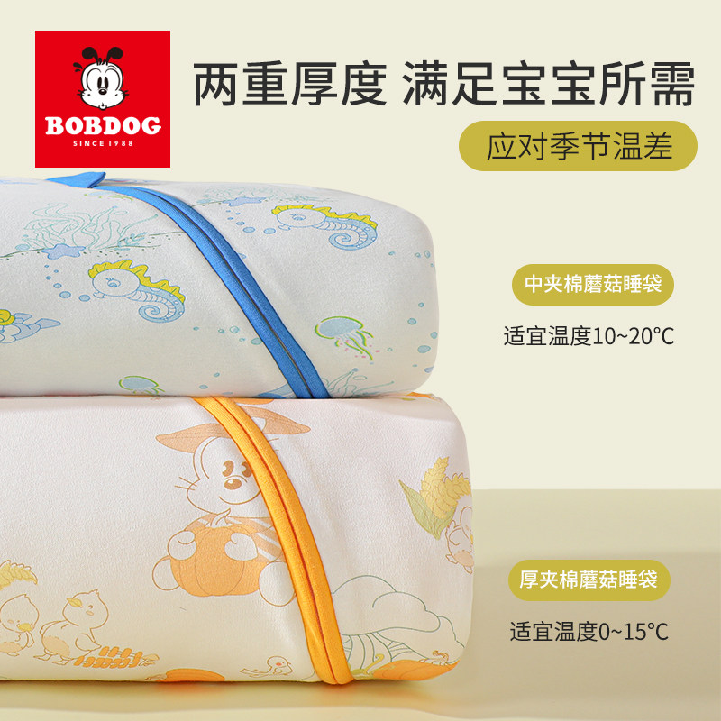 巴布豆婴儿睡袋春秋冬款恒温纯棉新生儿宝宝一体式防踢被冬季加厚