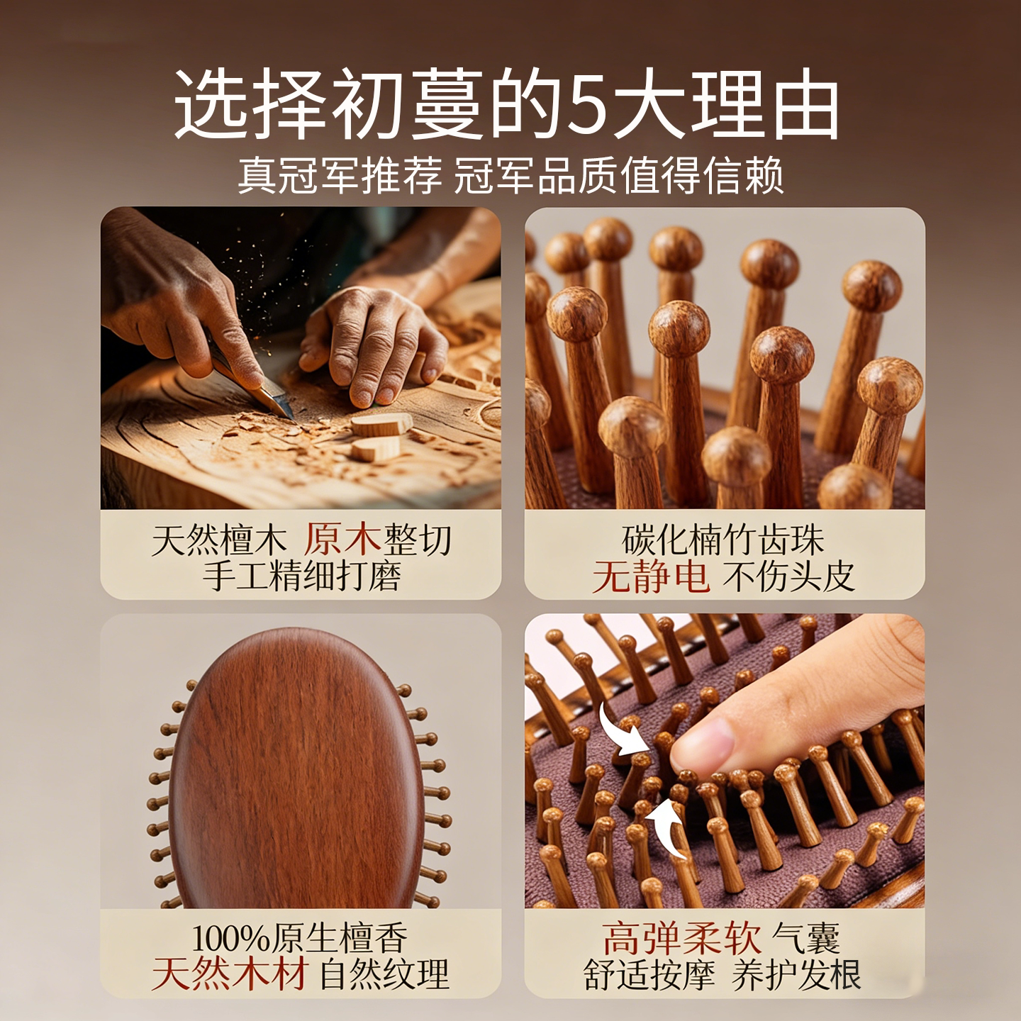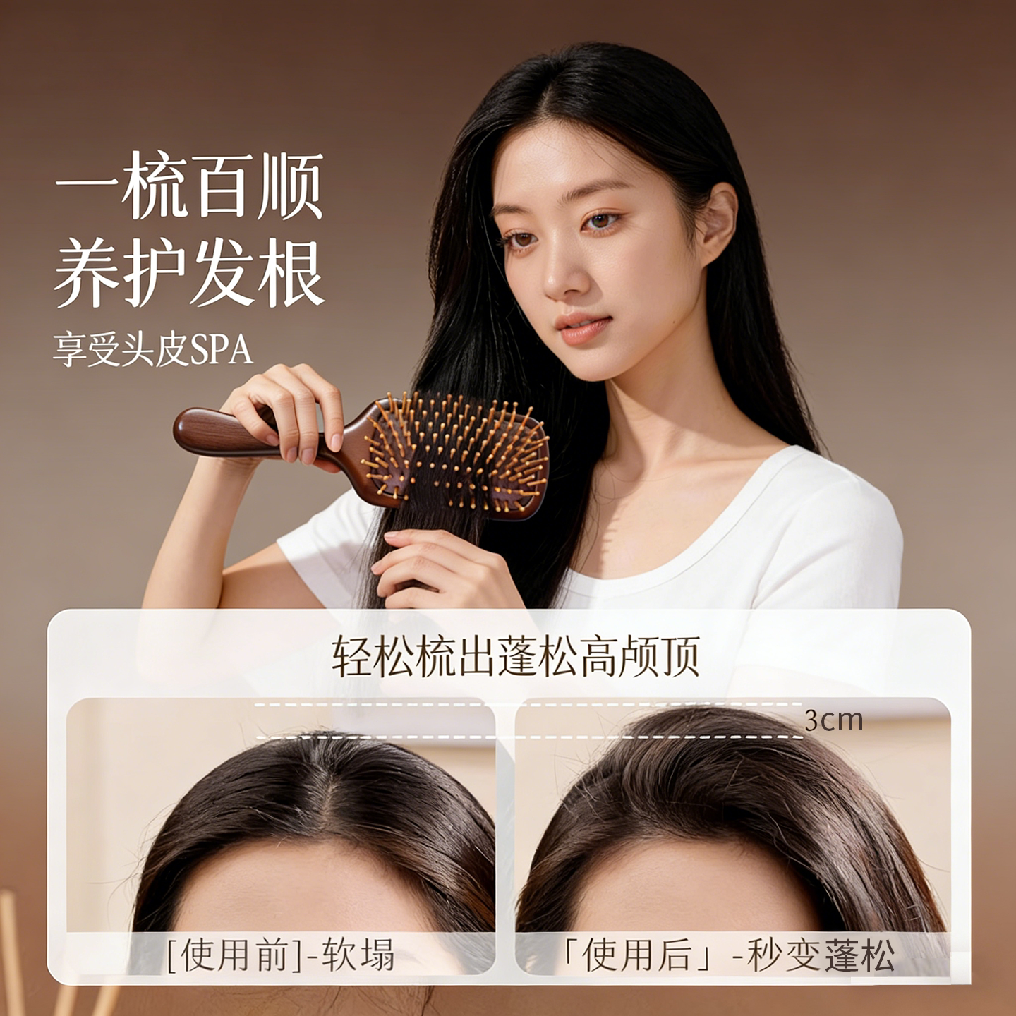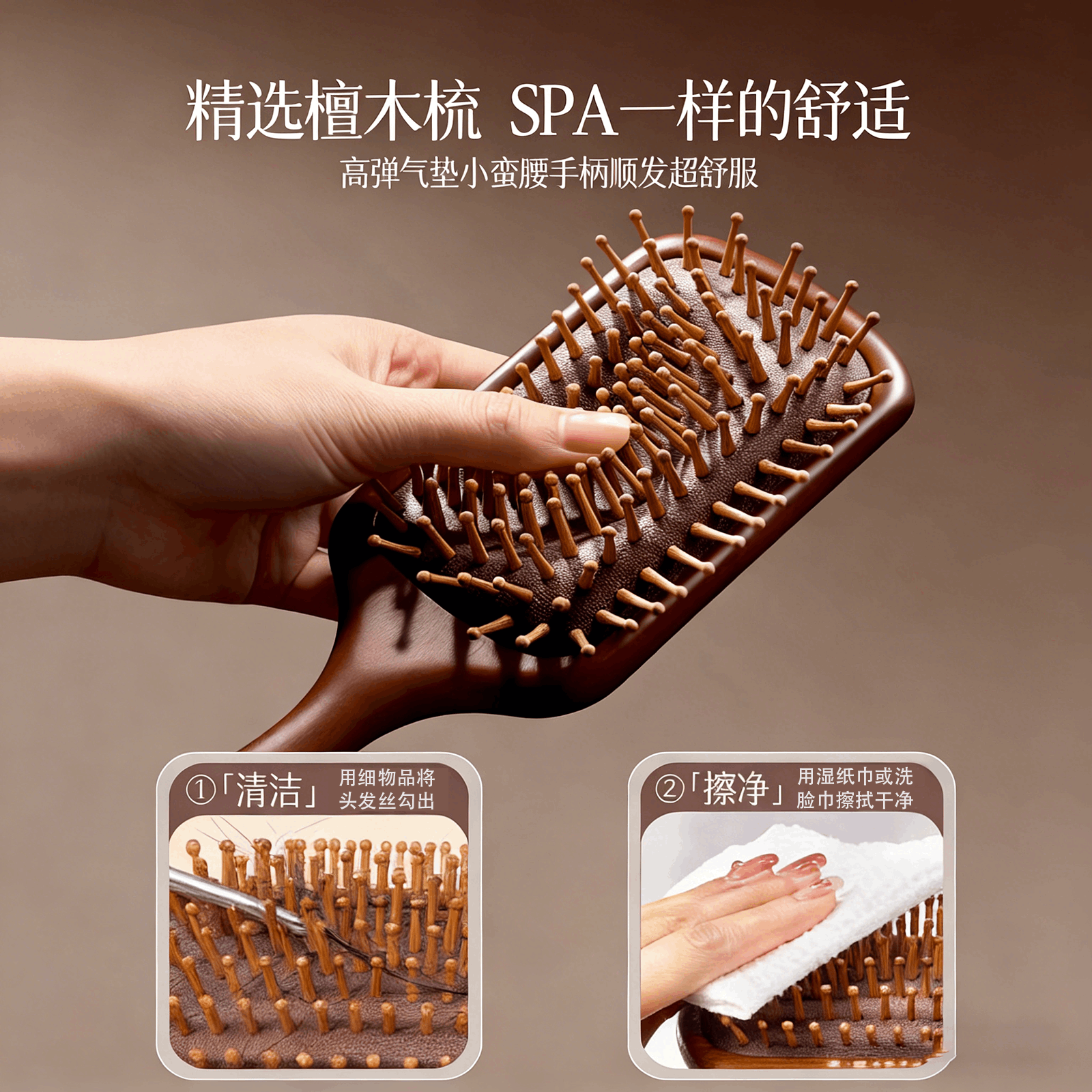 檀木气垫梳女士家用顺发头部头皮经络疏通按摩梳毛囊气囊梳子便携