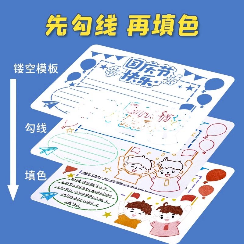 国庆节校园手抄报模板主题镂空绘画模板通用儿童小学生一年级画画
