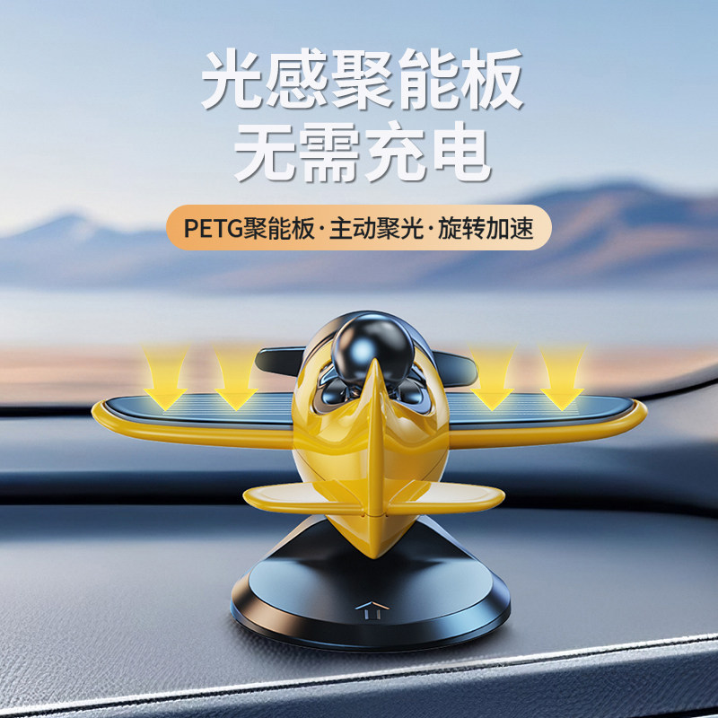 2025新款车载摆件太阳能旋转小飞机创意汽车中控台高档车内装饰品